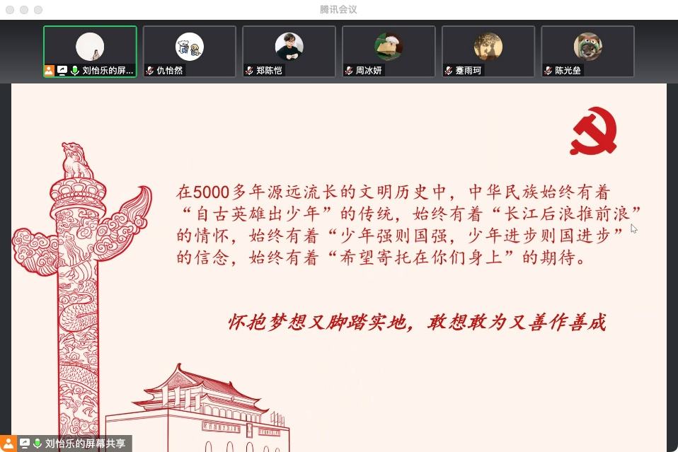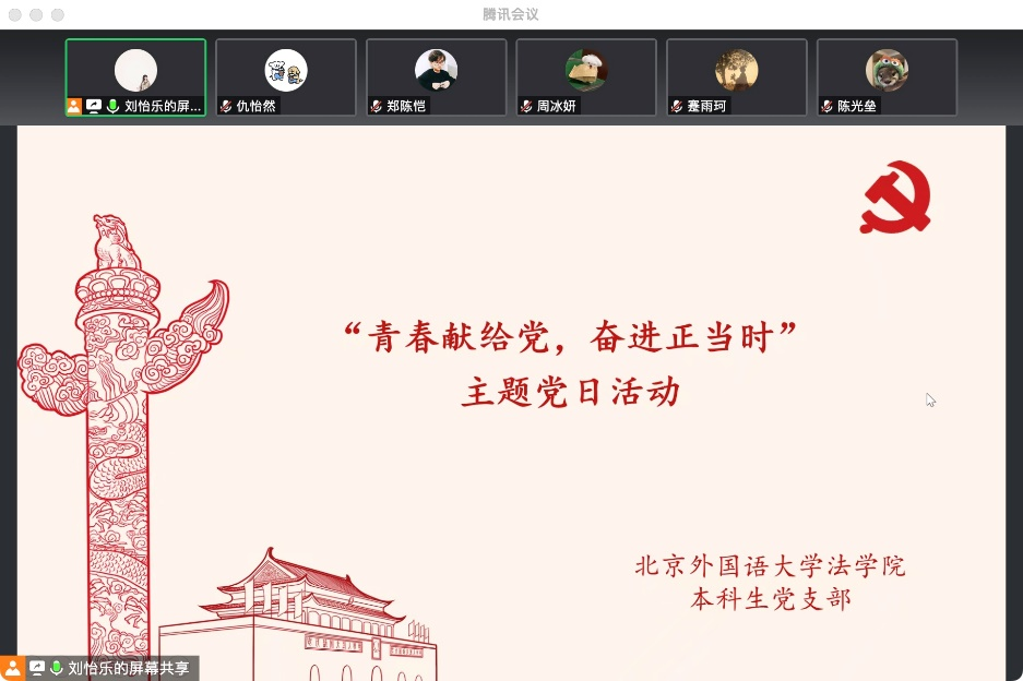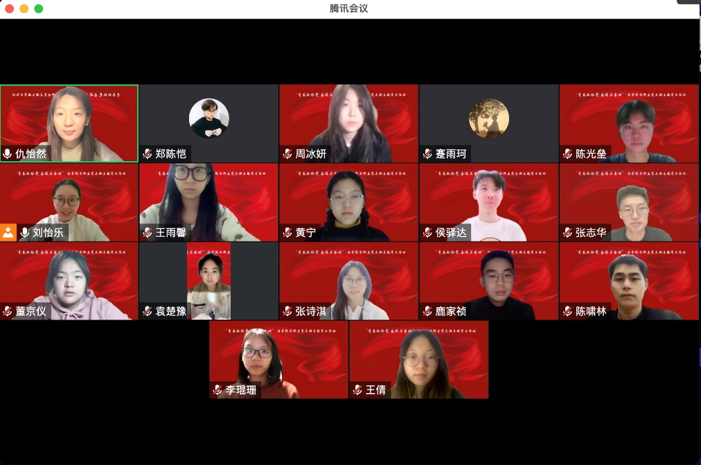 为深入学习贯彻党的二十大精神, 2022年11月20日晚8点,beat365官方网站本科生党支部结合校园疫情防控最新要求,通过线上会议组织开展“青春献给党 奋进正当时”主题党日活动,支部全体党员参会,本科生党支部党务助理刘怡乐同志主持活动。