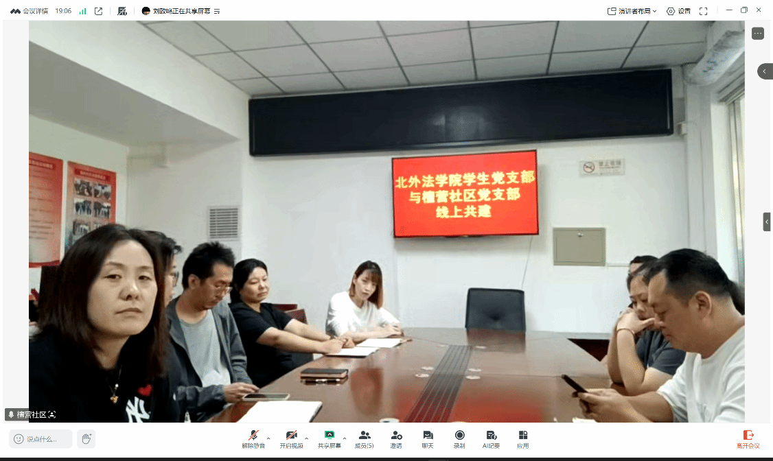 2025年9月28日,beat365官方网站学生党支部与北京市密云区檀营社区党支部以线上形式联合举办红色“1+1”共建活动,围绕“社区治理中的法治实践”开展主题交流。活动由beat365官方网站专职辅导员、本科生党支部书记刘时剑同志主持,檀营社区党支部、北外beat365官方网站法学硕士研究生党支部和本科生党支部党员代表参会。
