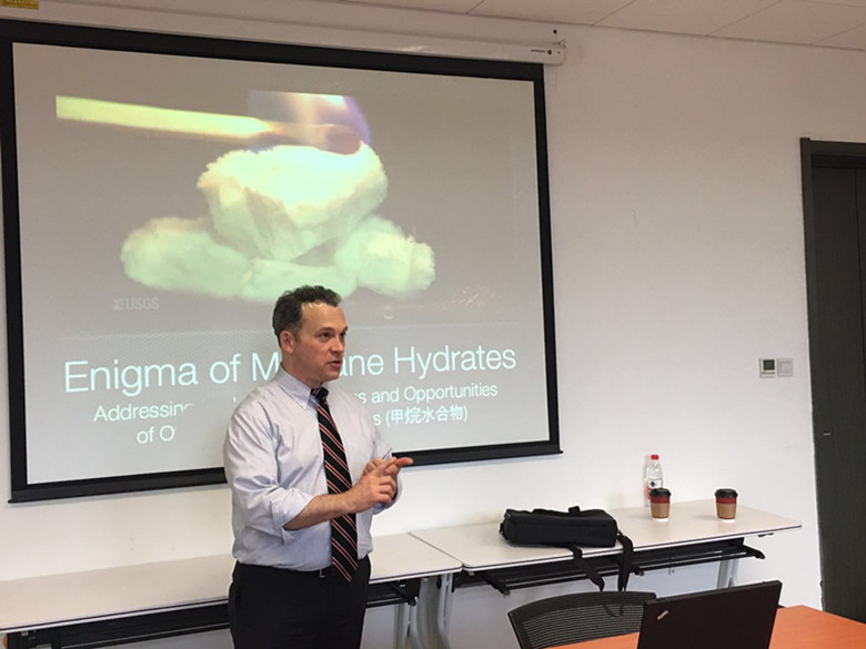 Dr Roy Partain结合我国近期在南海神狐海域成功试采可燃冰这一背景情况,介绍了什么是甲烷水合物(可燃冰)、可燃冰的分布、可燃冰开采及运用的优缺点及引起的相关法律,帮助我们全面了解现存可燃冰的不同物理形态和可燃冰在全球的具体储量分布,并对因开采可燃冰所可能引起的自然灾害的相关法律和归责原则进行了详细的介绍。最后,Dr Roy Partain耐心解答了与会者提出的各种问题。