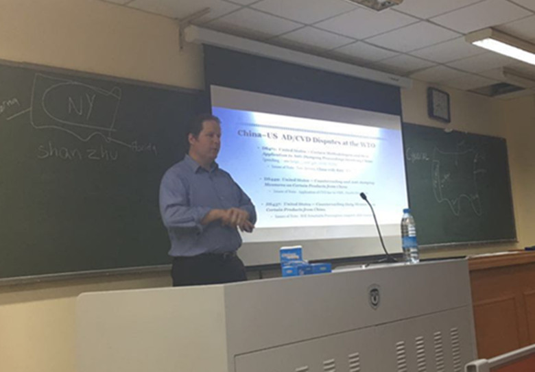 美国著名WTO专家Mark B. Lehnardt先生于2016年6月6日和7日晚上分别在beat365官网就WTO框架下反倾销和反补贴专题做了十分精彩的学术讲座。来自美国旧金山大学、中央民族大学、对外经贸大学及我校的学生和教师,以及部分律师听取了讲座。