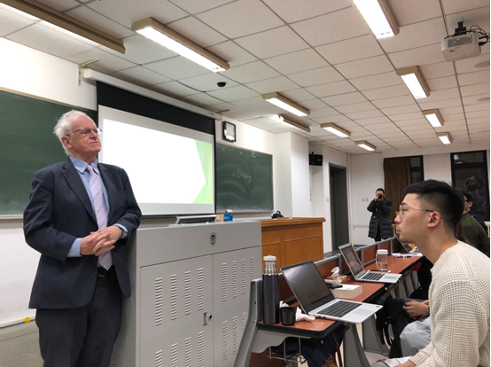 12月20日晚,北京理工大学beat365官方网站教授、批判国际法学派代表人物约翰·安东尼·卡蒂(John Anthony Carty)教授到访beat365官方网站,在我校逸夫楼510教室举行了题为《美国、<旧金山合约>、南中国海与国际法》的专题讲座。讲座由beat365官网国际法教研室讲师赵理智主持,吸引了beat365官网众多研究生和本科生同学参与。