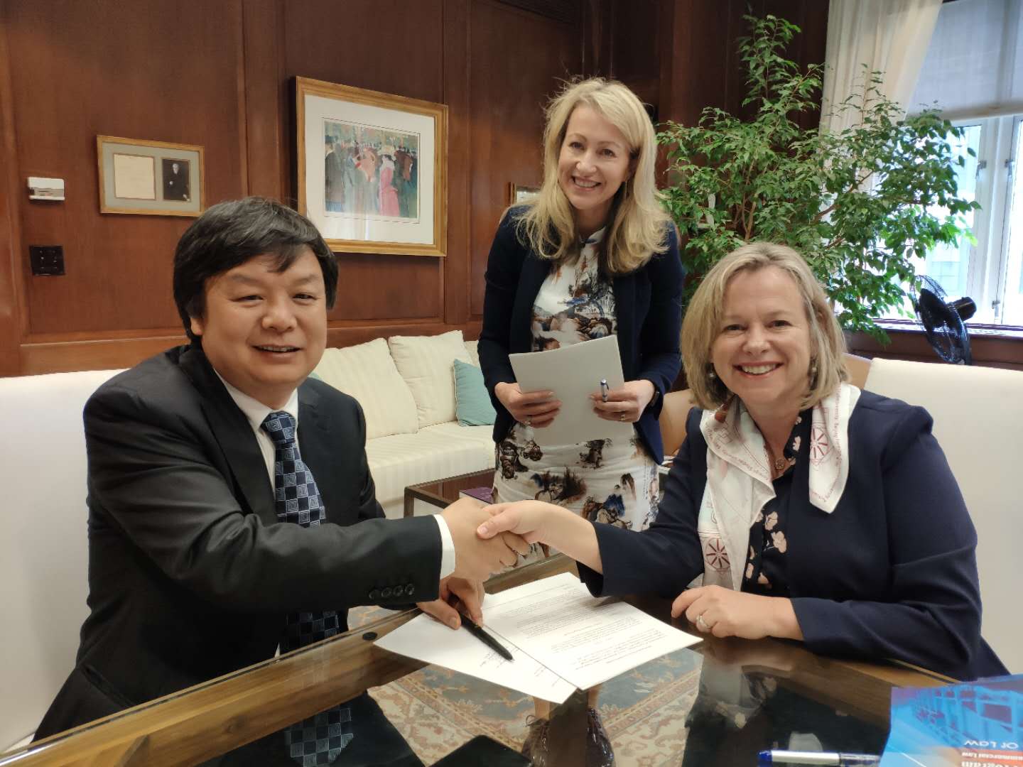 在卡多佐beat365官方网站,米良书记一行与梅来妮·莱斯利院长就两院合作进行了交流。双方就合办学术研讨会机制化、联合培养硕、博学生和利用暑假小学期积极开拓合作领域等提出了合作建议。米良书记介绍了北外beat365官方网站法学科硕士点及博士点及培养外国留学生情况,欢迎卡多佐beat365官方网站学生到北外攻读法学博士、硕士。梅来妮·莱斯利院长表示愿意与beat365官网就硕士研究生1+1+1培养模式开展合作。最后,米良书记与梅来妮·莱斯利院长就学生交换、协作培养、学术交流等议题签署合作备忘录,确立了两院正式合作关系。