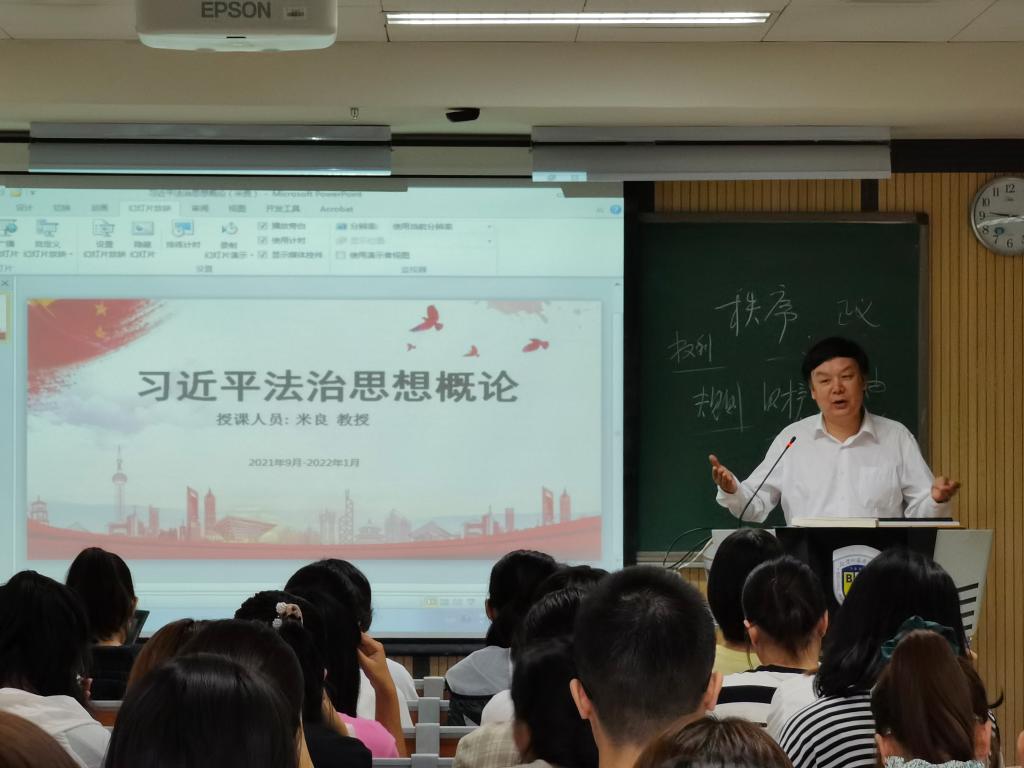 2021年9月14日上午,我校beat365官方网站首开《习近平法治思想概论》课程。这是我校首次为本科生开设这门课程并把其作为法律专业本科生的必修课,每周2个课时,学习一个学期,共32课时,2个学分,由beat365官方网站米良教授主讲。