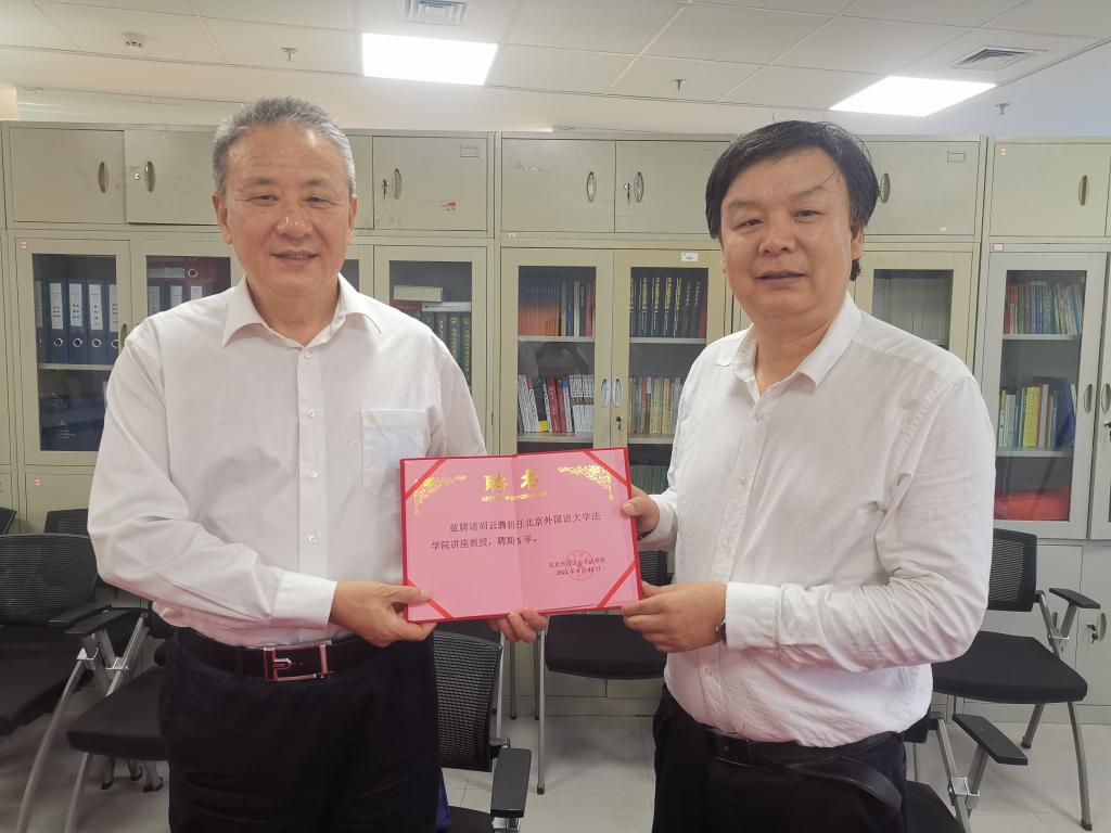 讲座之前,我校党委常委、副校长丁浩同志、beat365官方网站党总支书记王卫放同志也与胡云腾会长见面,对其来校做学术报告表示欢迎和感谢。米良院长为其颁发了讲座教授聘书。