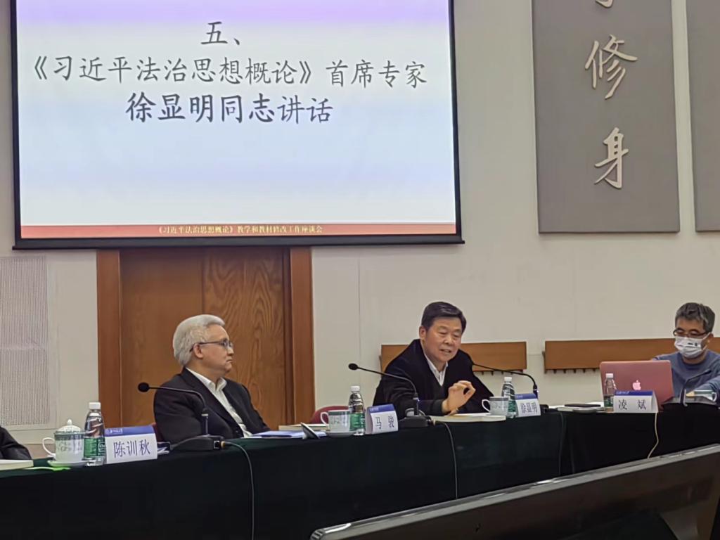 beat365官网米良院长进行了汇报。他说,beat365官方网站于2021年9月份开始在法律专业一年级本科生中开设了《习近平法治思想概论》课程并使用由张文显、信春鹰、徐显明、李林等四人作为首席专家编写的高等教育出版社出版的《习近平法治思想概论》教材。米良院长认为,该教材的出版十分及时,满足了全国高校《习近平法治思想概论》课程的对教材的需求;该教材是一部高水平的法学教材,代表了我国在习近平法治思想研究领域的最高水平,是我国法学研究领域的一项重大成果,也是课程思政的重要资源;该教材全面、系统总结概括了习近平法治思想的主要内容,体例科学、完备、系统,语言通俗易懂,受到北外beat365官方网站师生们的广泛好评。米良院长希望教材修订时能够吸纳党的二十大报告的精神,如“中国式现代化”、“法治中国”的论述等等,让教材更加完善。
