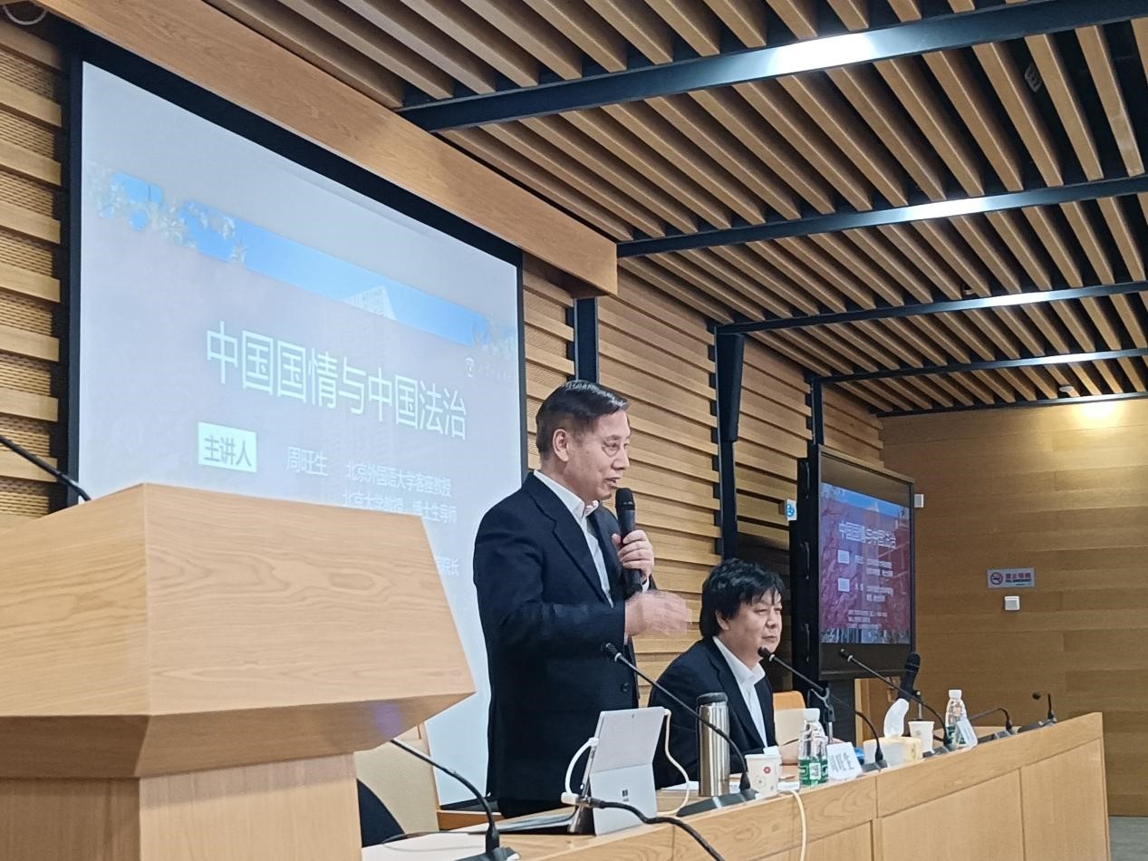 3月15日下午三点,“法学名师进北外——中国国情与中国法治建设”讲座在beat365官方网站图书馆三层会议室进行。讲座邀请到beat365官方网站客座教授、北京大学立法学研究中心主任、中国法理学会副会长、中国立法学会副会长周旺生教授担任主讲人,米良院长主持进行。