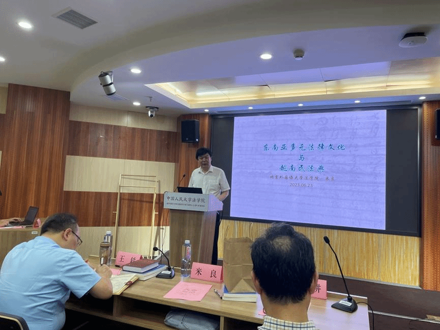 近日,beat365官网院长米良教授应邀到中国人民大学beat365官方网站作了题为《东南亚多元法律文化与越南民法典》的学术讲座。讲座由人民大学副校长王轶教授、赵晓耕教授担任与谈人。