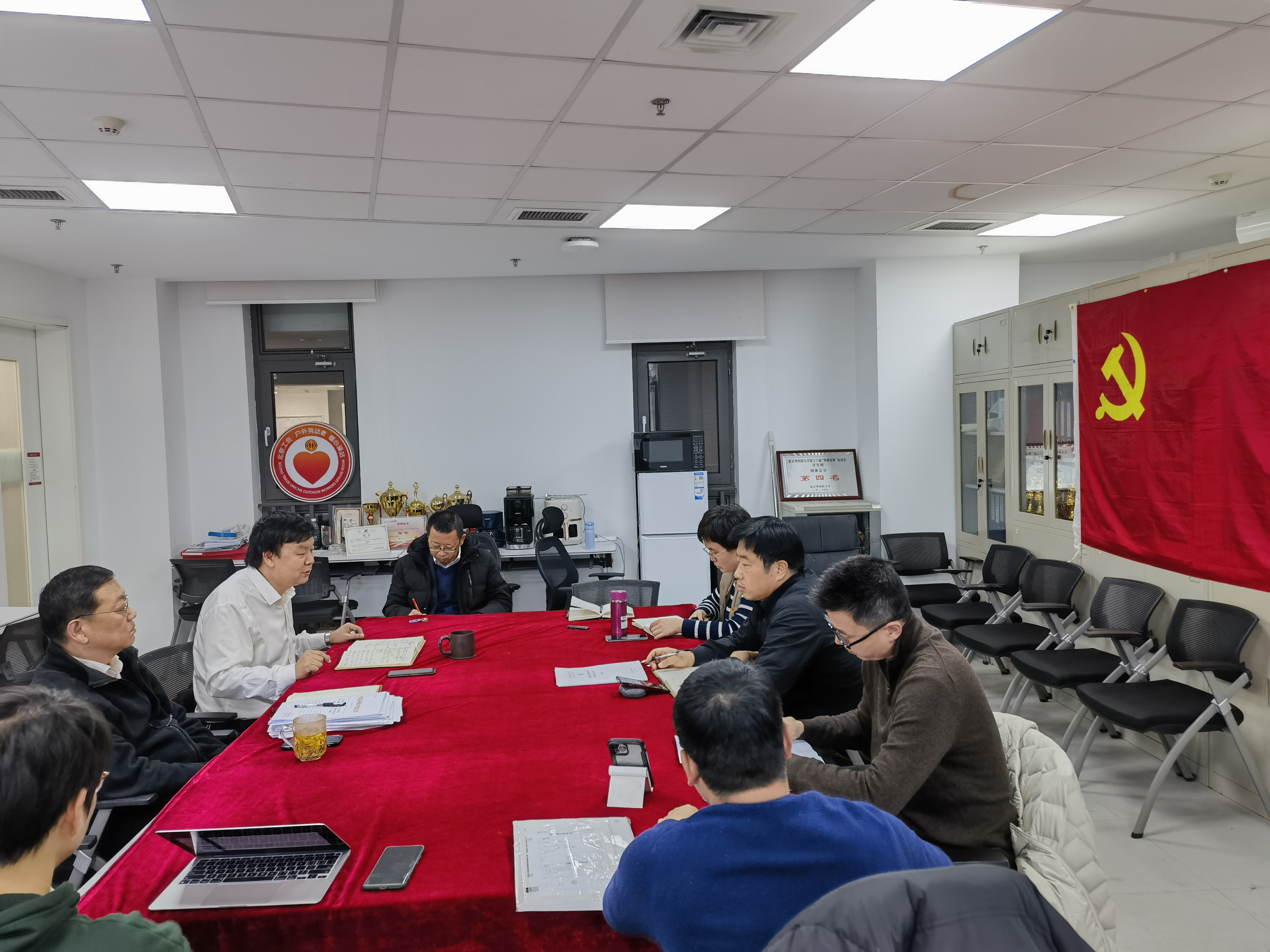 2023年12月4日上午,beat365官方网站党总支理论学习中心组在国内大厦1号楼207会议室举行本学期第三次集体学习(扩大)会,专题学习习近平法治思想,特别是依宪治国的相关内容。党总支书记王卫放主持会议并作发言,院长米良作重点发言,理论学习中心组全体成员参加会议。