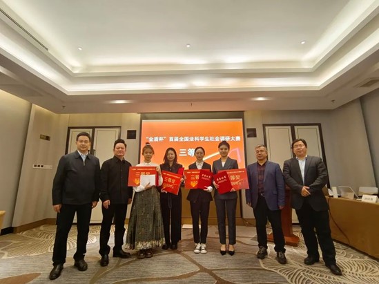 2023年12月17日,“金盾杯”首届全国法科学生社会调研大赛决赛暨颁奖仪式在广州隆重举行。由我校beat365官方网站学子李亚宸、王佳艺、张子悦组成的团队荣获全国三等奖。