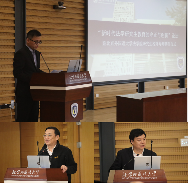 主题发言阶段,司法部原国际合作局副局长张晓鸣、北京天驰君泰律师事务所高级合伙人周塞军、北京市蓝鹏律师事务所主任张起淮、北京恒都律师事务所主任江锋涛分别进行了主题发言。张晓鸣副局长强调学习习近平法治思想和外交思想的重要性。周塞军律师从律师队伍发展的角度出发,探讨了法学教育对律师行业的影响和启示。张起淮主任分享了法学创新人才培养模式并指出了关注学科交叉融合的重要性。江锋涛主任指出校内外导师联合授课对涉外法治人才培养的必要性,并强调法学教育的终身学习和教育。