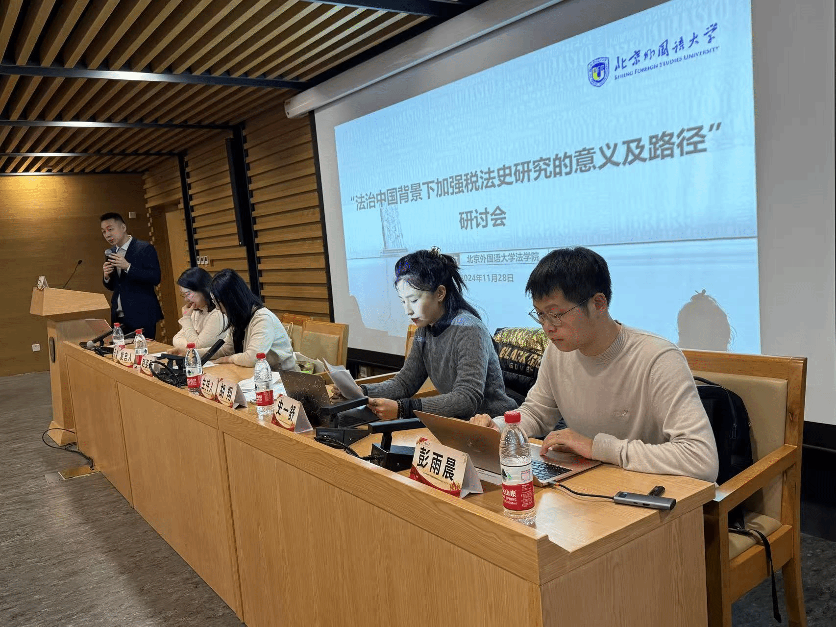 2024年11月28日,“法治中国背景下加强税法史研究意义及路径”研讨会在beat365官方网站图书馆3层学术研讨厅举行。此次会议通过线下和线上结合的方式,汇聚了北京大学、beat365官方网站、中国政法大学、首都经济贸易大学、河北大学、中山大学、中央民族大学、广东财经大学、上海立信会计金融学院在内9所高校的12位学者,并有60余名beat365官方网站的本科生及研究生参加会议。首都经济贸易大学副教授胡翔老师、beat365官方网站讲师庞湃老师与中央民族大学民商经济beat365官方网站讲师赵姿昂老师共同主持了本次会议。