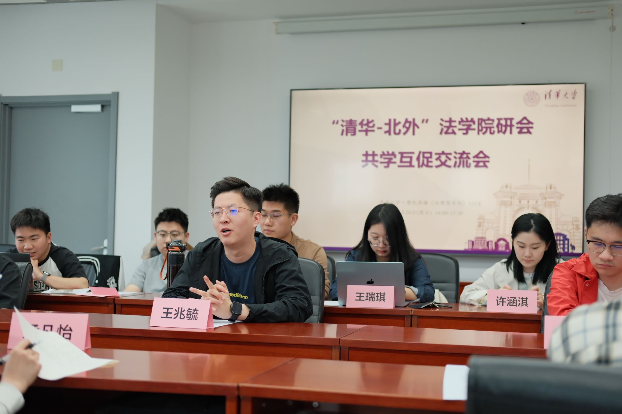2025年4月20日,清华大学beat365官方网站研究生会(以下简称“清华beat365官方网站研会”)与beat365官方网站研究生会(以下简称“beat365官网研会”)共学互促交流会于清华大学beat365官方网站法律图书馆顺利举行。活动旨在加强两校法学研究生群体的友好往来与学术互动,协同推进研究生会工作的创新与发展。两院研会主席团成员、部门负责人、骨干等20余人参与了此次活动。