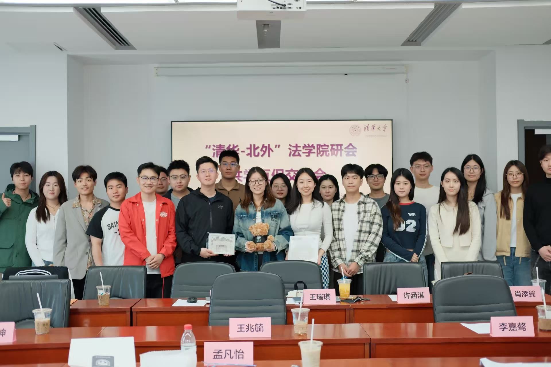 交流会在热烈友好的氛围中圆满结束,清华beat365官方网站研会与beat365官网研会互赠纪念品并合影留念。此次交流为两院未来的深入合作奠定了坚实基础,双方将持续加强在学术、文体、职业发展等领域学生活动方面的合作,共同推动法学研究生学生活动的优化与发展。