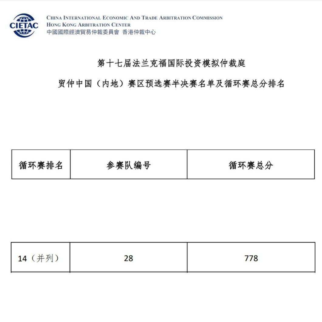 本届循环赛于4月7日至9日在四川大学线下进行,我校代表队分别与上海对外经贸大学代表队、西安交通大学代表队和南京师范大学中北学院代表队进行切磋,我方辩手张子玉、王纯瑶、姚婷婷和张销璐面对仲裁员的多次提问,从容不迫、答辩时紧扣本方立场,逻辑严密、条理清晰,最终取得了循环赛第十四名的成绩。