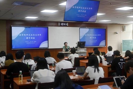 王文华教授发表了百余篇论文,3篇被《新华文摘》全文转载,多次获中国法学会、最高法等单位的学术成果奖,指导了近百篇本、硕、博学位论文,2021年被评为“北外优秀硕士论文指导教师”。她结合法学前沿与指导经验,围绕学位论文“选题、资料、方法、结构、论证、结论、格式”等七大核心环节进行了系统讲解。她强调,论文选题的首要问题是问题意识,选题要具备法学属性、时效性、关联性、必要性、可行性、创新性,坚持正确的政治方向,以实践为导向,避免宏大叙事;资料收集要注意平时不断积累,拒绝依赖AI,优先使用权威论著及中外文权威法学数据库,尽可能穷尽中外相关文献;在研究方法上,若采用案例分析,须区分个案与类案,若进行比较研究,不仅要进行制度文本比较,更要深入制度背后的社会背景、功能逻辑研究;在论文结构方面,文首应“开门见山提问题”,全篇得像是一篇学术论文而不仅仅是翻译资料堆砌;论证必须实现逻辑自洽;结论须稳妥可行、经得起推敲,避免“伪创新”;格式必须严谨规范,最好熟读《法学引注手册》,认真按照学校及学院的要求调整格式,经得起外审、答辩评审及倒查。