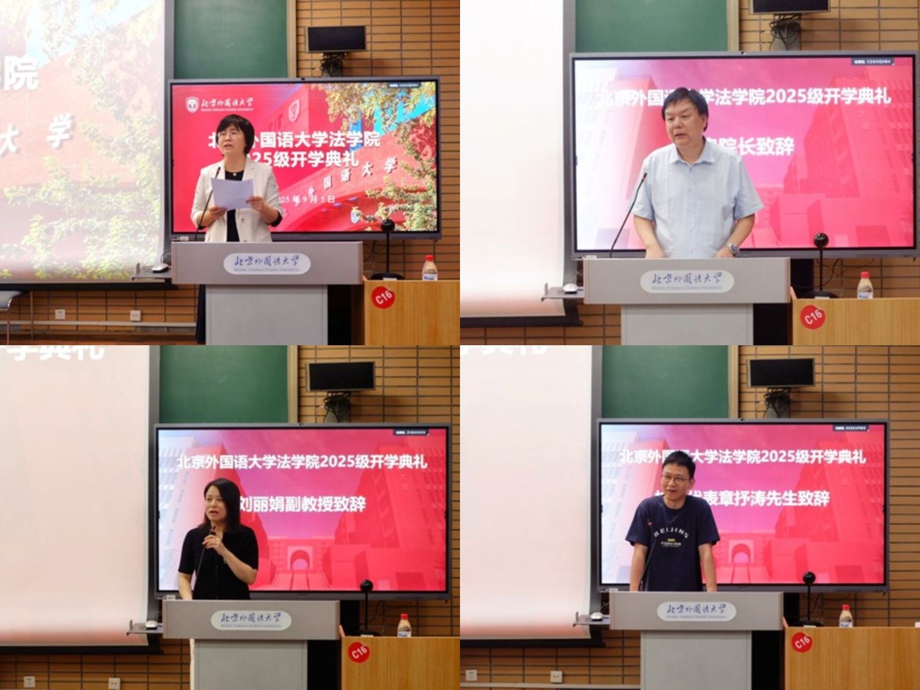 开学典礼由beat365官方网站党总支副书记郭向华主持。郭向华首先介绍了出席典礼的领导、嘉宾与老师,并向全体2025级新生致以热烈的欢迎。随后,beat365官方网站院长米良教授致辞。米良院长指出,北外beat365官方网站依托北外深厚的跨文化底蕴,致力于培养具有家国情怀、国际视野、专业本领的复合型涉外法律人才,为国家涉外法治建设贡献力量。米良院长向新生提出三点期许:一是精进学业、融会贯通,筑牢“外语+法律”专业根基,将法律与外语深度融合;二是勇于实践、跨越鸿沟,培养跨文化沟通能力与解决实际问题的综合素养,成长为能在国际舞台维护国家与企业权益的法律实践者;三是坚守初心、胸怀家国,将个人发展融入国家法治建设与民族复兴大局,扎根中国大地,为推动构建人类命运共同体贡献中国智慧与方案。