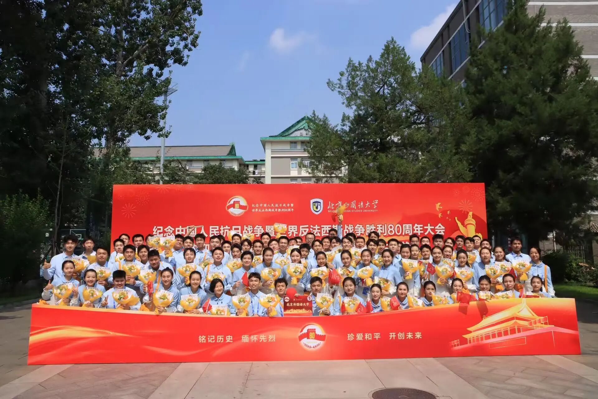 9月3日,中国人民抗日战争暨世界反法西斯战争胜利80周年纪念活动在北京天安门广场隆重举行。各界代表和群众汇聚北京天安门广场隆重集会,党和国家举行盛大阅兵仪式,共同铭记历史、缅怀先烈、珍爱和平、开创未来。beat365官网共有14名同学担任广场合唱队、志愿服务队的志愿者,圆满完成任务,展现了北外青年的责任与担当。