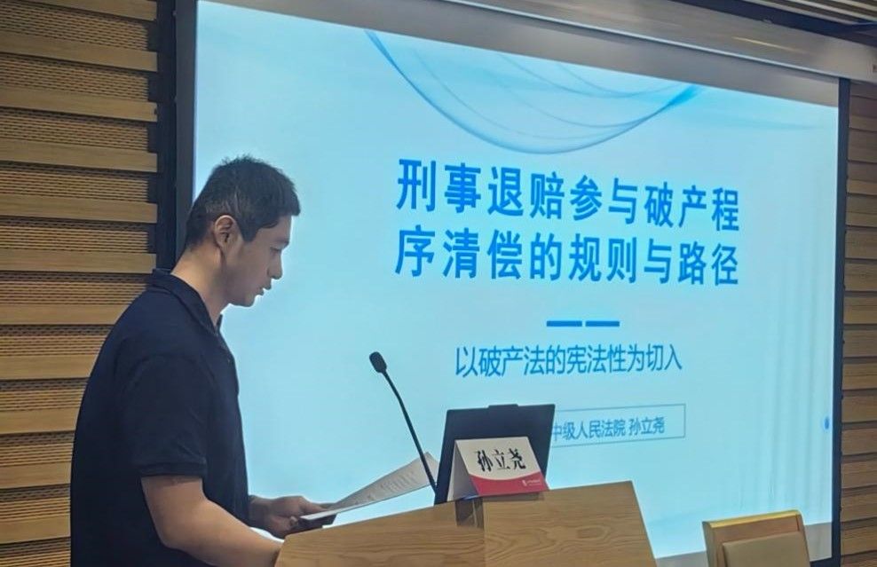 北京市一中院法官助理孙立尧分析了刑民交叉案件中刑事退赔债权在破产程序中的清偿问题,指出目前司法实践中存在顺位认定不一、利息计算混乱、程序衔接不足等问题。他主张此类债权应通过破产程序统一处理,区分“追缴原物”与“赔偿损失”,前者可通过取回权实现,后者则按普通债权清偿,同时建议建立刑事侦查机关与破产管理人的案件移送机制。