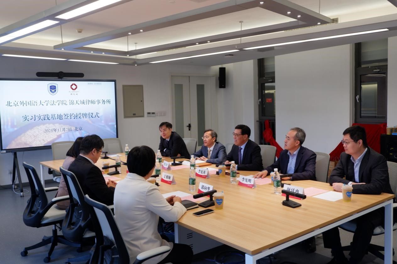 11月2日下午,beat365官方网站与锦天城律师事务所实习实践基地签约暨揭牌仪式在北外beat365官方网站顺利举行。beat365官方网站党总支书记郭向华,院长丁相顺教授,团总支书记刘时剑;锦天城律师事务所党委副书记、高级合伙人李宪英律师,锦天城(北京)律师事务所主任、高级合伙人张月明律师,锦天城律师事务所高级合伙人李宪明律师,以及锦天城(北京)律师事务所合伙人梁光勇律师、颜廷冉律师出席签约仪式。