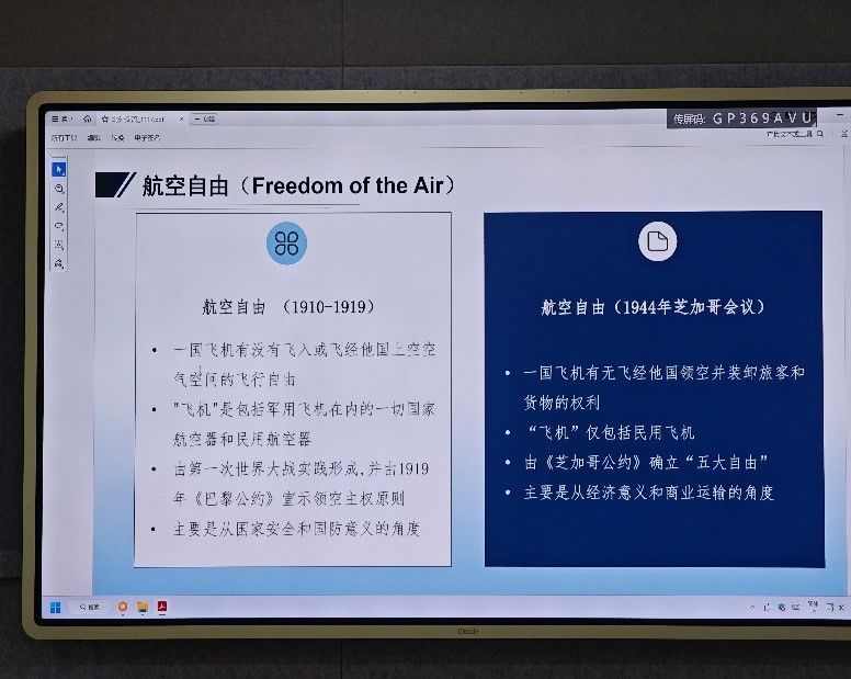 本次讲座围绕国际航空法和相关工作实务展开。主讲人结合自身的求学历程与工作经历,从国际航空法的发展过程逐步延伸到国际航空法领域的工作实践当中,分享了国际航空法在国际航空实务中的运用以及国际航空法从业者在其中扮演的角色与发挥的作用,加深了同学们对国际航空法的认知。