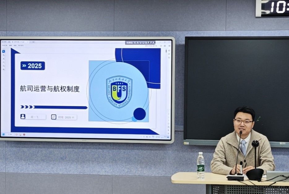 2025年11月18日,北外航空法治讲堂第八讲开讲,谢一飞先生作为主讲人,作了题为《航司运营与航权制度》的主题讲座。讲座由beat365官方网站副院长、beat365官方网站教授董念清主持。