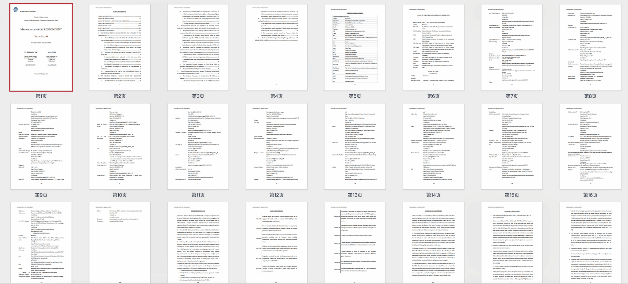 自赛题发布后,beat365官方网站代表队立即着手准备仲裁申请书(Memorandum for Claimant)和仲裁答辩书(Memorandum for Respondent)两份文书的撰写工作,其中5名队员负责程序部分的文书写作,4名队员负责实体部分的文书写作。在文书写作过程中,各位队员在充分理解赛题及其涉及的法律规则的基础上,熟练运用 Kluwer Arbitration、Jus Mundi、Westlaw 等检索工具,并参考 The Singapore International Arbitration Act: A Commentary、Practitioner’s Handbook on International Commercial Arbitration、A Guide to the SIAC Arbitration Rules、CISG Digest、Global Sales and Contract Law 等著作完成文书撰写。