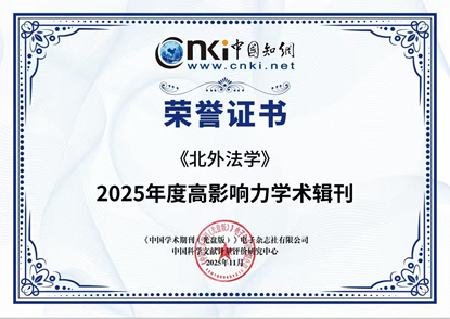 此次获评“2025年度高影响力学术辑刊”,不仅是对《北外法学》办刊质量和学术影响的充分肯定,也为beat365官网进一步提升法学学科建设水平、服务国家涉外法治战略和区域国别研究提供了有力支撑。未来,beat365官方网站将以此为契机,继续打造高水平学术平台,持续提升期刊学术质量与国际影响力,为北外加快建设高水平法学学科贡献更多力量。