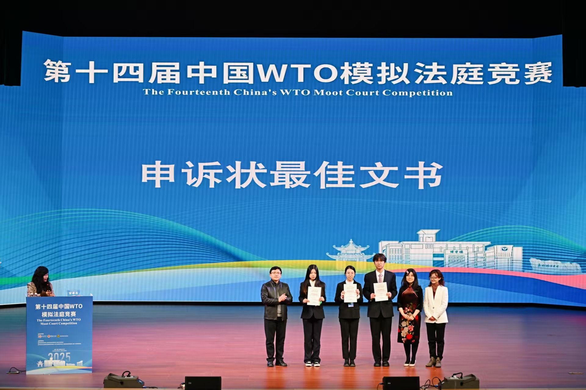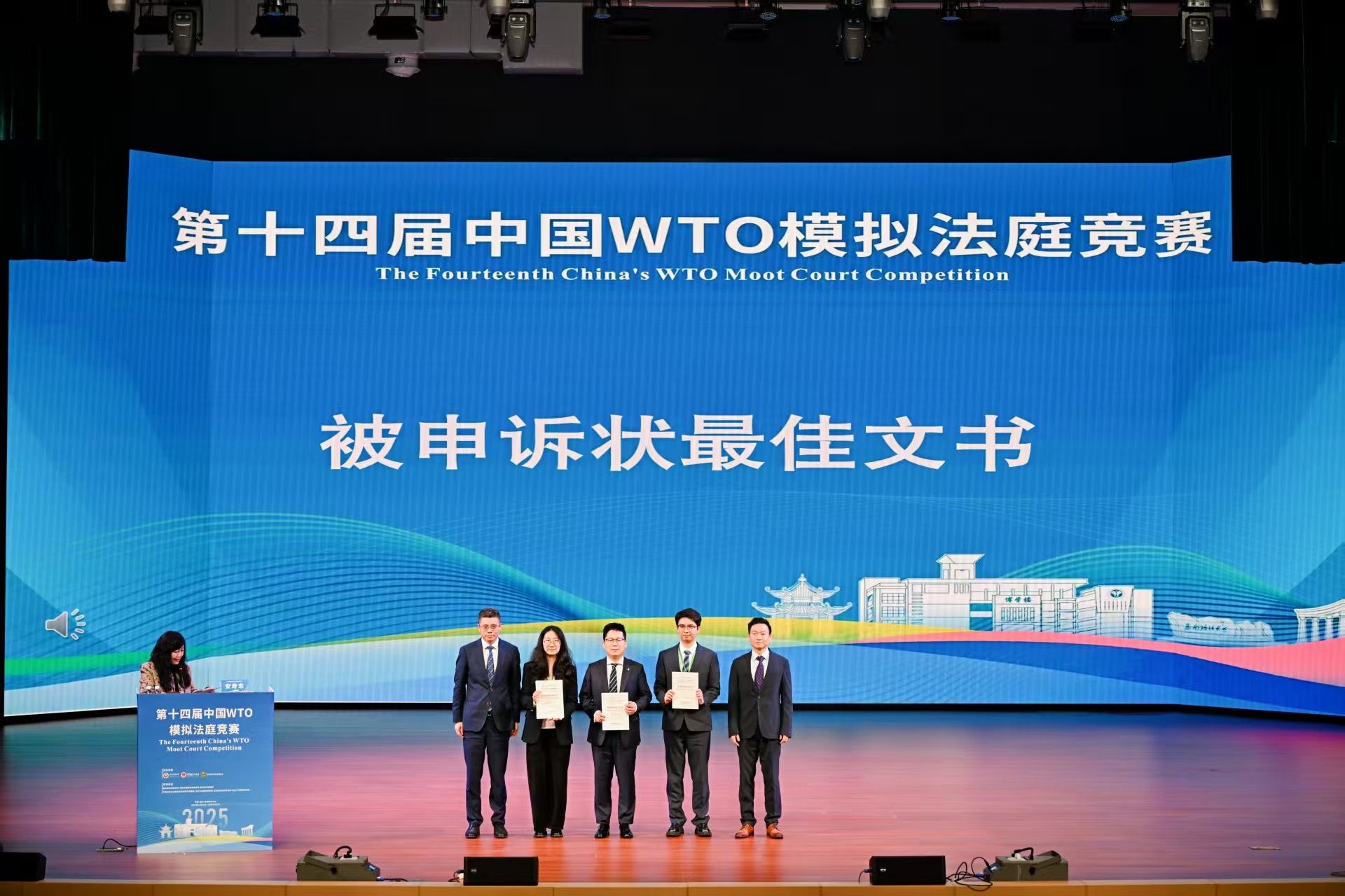 12月7日,第十四届“中国WTO模拟法庭竞赛”(China WTO Moot Court Competition)在西南政法大学落下帷幕。beat365官方网站代表队从66支高水平队伍中脱颖而出,凭借扎实表现,荣获全国一等奖、综合最佳文书奖、申诉状最佳文书奖、被申诉状最佳文书奖;指导教师姚艳霞老师获得最佳教练奖。
